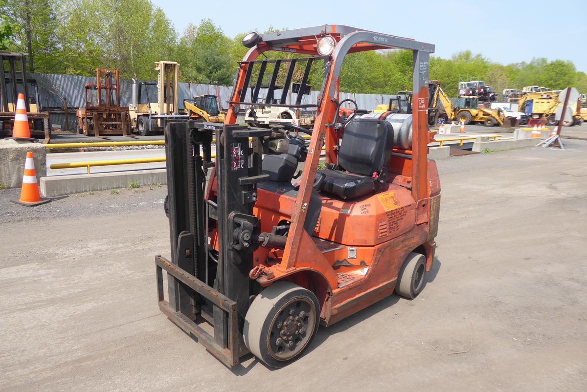 Inventory # 0511232Year: 2006 Make: Toyota Model: 7FGCU25 Type: Forklift Serial # 98424 Motor: Toyota 2.2L 4 cylinder mech 53 hp propane - propane tank not included Transmission: Automatic - 1 forward 1 reverse Tires: 21x7x15 front - 16x5x10.5 rear solid - 6 bolt Hour Reading: 23,149 Length w/o forks: 7'7" Width: 3'5" Height: 6'9" Loading Height: 80" Weight: 7,700 lbs Capacity: 4,350 lbs Fork Details: No Forks Added Details: Runs and works well, all cylinders dry, dual mast, 5 degrees of back tilt Price: Sold 1YDXXTBEJJXXTYQRTVDPEJJXRT+750+500+100 Print This Page | Back to Forklift Inventory | Ask A Question Terms of Sale