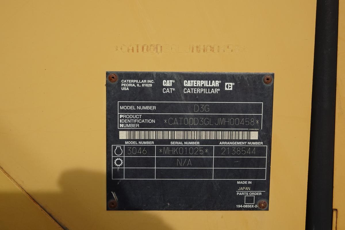 Inventory # 1105252Year: 2003 Make: Caterpillar Model: D3G XL Type: Bulldozer Serial # CAT00D3GLJMH00458 Motor: Caterpillar 3046T Turbo Diesel Mech 77 HP Transmission: Hydrostatic Rear: Tracks: 16" W x 7" L, Single Grouser Pads - 7'9" Ground Tread - 6 Bottom Rollers, 1 Top Roller Hour Meter Reading: 7,184 Length w/ Blade: 13'1" Width: 6' Width w/ Blade: 7'10" Height: 9'1" Undercarriage: 80% Weight: 16,100 lb Blade Details: 7'3" W x 3' T - 7'10" Steel Edge - 6 Way Hydraulic Blade Added Details: Runs And Works Well, All Cylinders Dry, Very Minor Play In Blade Pins And Bushings, Open ROPS Price: $34,900 1YDXXTCBIJJXXTRQPLKDPBFCBJXRT+750+1200 Print This Page | Back to Bulldozer Inventory | Ask A Question Terms of Sale