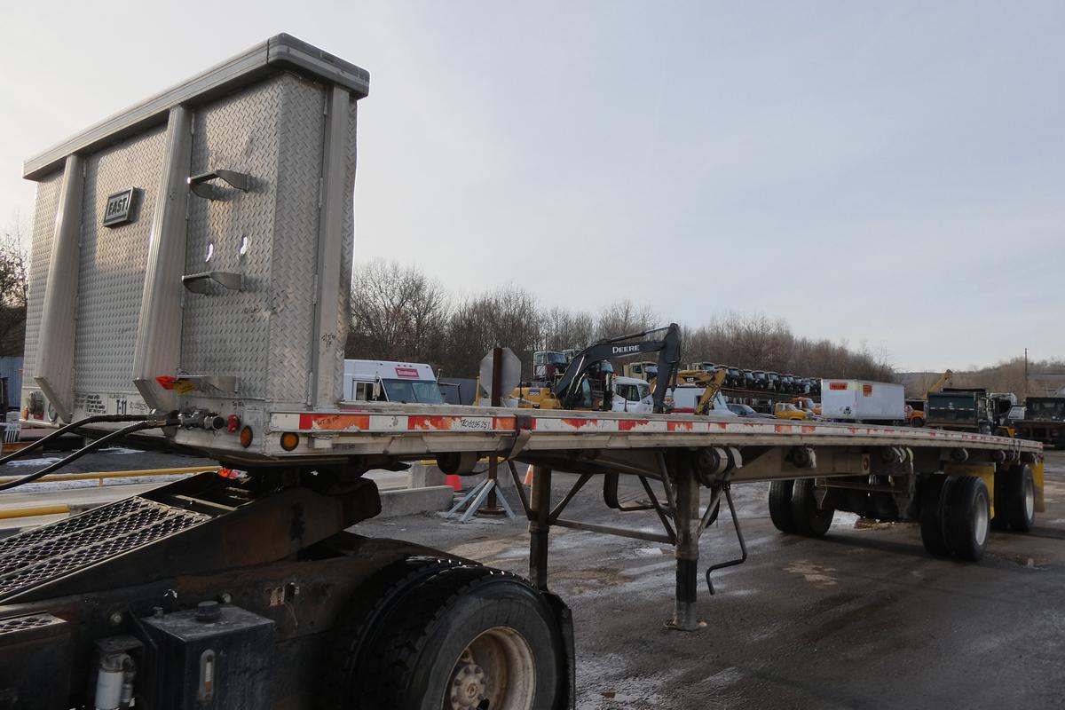Inventory # 0205251Year: 2004 Make: East Model: Axles: Fixed Spread Tandem Type: Flatbed Trailer VIN: 1E1H5Y2874RE34686 Suspension: 4 air bag Tires: 275/80R24.5 / 285/75R24.5 Rims: 10 bolt hub pilot - Aluminum Length: 48' Width: 102" Height: 9' Deck Height: 58" Weight: 10,300 lbs GVWR: 80,000 lbs Trailer Composition: Aluminum / Steel Floor Composition: Wood / Aluminum Added Details: Air brakes, 4' aluminum headache rack, Front Axle Lifts Up, 10 D-rings In Center Of Deck, 14 Ratchets, 12 Straps Price: Sold 1YDXXTAJEJJXXQRTVDPGHHAXRT+750+450 Terms of Sale