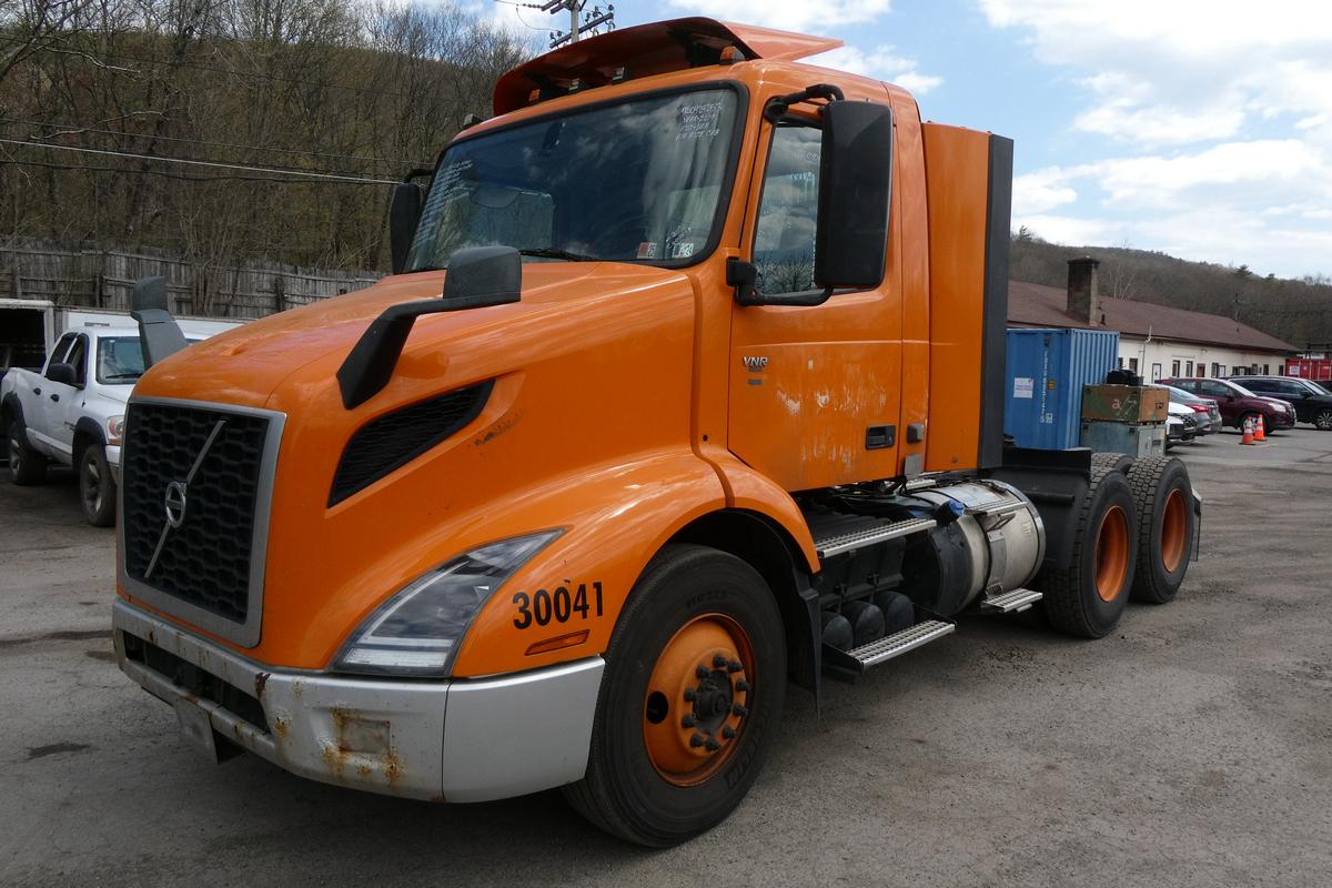 Inventory # 0424253Year: 2019 Make: Volvo Model: VNR64T300 Type: Tandem Axle Day Cab Tractor VIN: 4V4WC9EG6KN907230 Motor: Volvo D13 12.8L Elec 405 hp Air to Air: Yes Air Conditioning Yes (Works) Engine Brake: Electronic DEF: Yes Transmission: Volvo AT2612F IShift (Clutchless) 12 speed automated manual PTO: n/a Front Axle: 12,350 LB Rear: Meritor MT40-14X 40,000 LB Ratio: 2.47 Power Divider: Yes Suspension: Volvo 4 Air Bag 40,000 LB Tires: 11R22.5 Rims: 10 bolt hub pilot - steel Odometer Reading: 826,426 ECM Reading: Hour Meter Reading: 19,951 ECM Hour Reading: Length: 24' Width: 8' Height w/ fairing folded: 10'2" Wheelbase: 176" Cab to Axle: 113" Cab to End: 158" Weight: 16,300 lbs GVW: 52,350 lbs Added Details: Runs Well - Engine Light On, Single Frame, Air Slide 5th Wheel, Air Disc Brakes Price: Sold 3RVXXTHIJJXXTRPLKVDPDEJJXRT+750+600 Terms of Sale