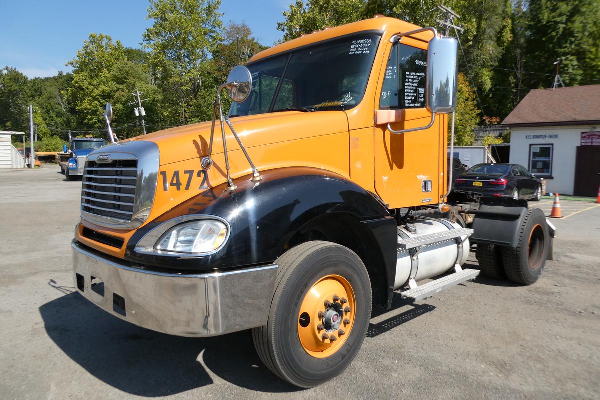 Inventory # 0915252Year: 2007 Make: Freightliner Model: Columbia 120 Type: Single Axle Day Cab Tractor VIN: 1FUBA6CG57LW37906 Motor: Detroit Series 60 12.7L Elec 380/455 HP Air to Air: Yes Air Conditioning: Yes (Works) Engine Brake: Electronic DEF: No Transmission: Fuller RTO14910C-AS 10 Speed Automated Manual Transmission With Clutch PTO: No Front Axle: 12,000 lb Rear: Meritor RS23-160 23,000 lb Ratio: 3.58 Power Divider: N/A Suspension: Airliner 2 Air Bag 23,000 lb Tires: 11R22.5 Rims: 10 Bolt Hub Pilot - Steel Odometer Reading: 619,198 ECM: 619,193 Hour Meter Reading: 25,735 ECM Hour Reading: Length: 19'10" Width: 8' Height: 9'9" Wheelbase: 154" Cab to Axle: 80" Cab to End: 103" Weight: 12,900 lbs GVW: 35,000 lb Added Features: Runs Well, Single Frame, Stationary 5th Wheel Price: Sold 2STXRTREIJJXXTRQPLKDPBBEJXRT+750+500+100 Terms of Sale