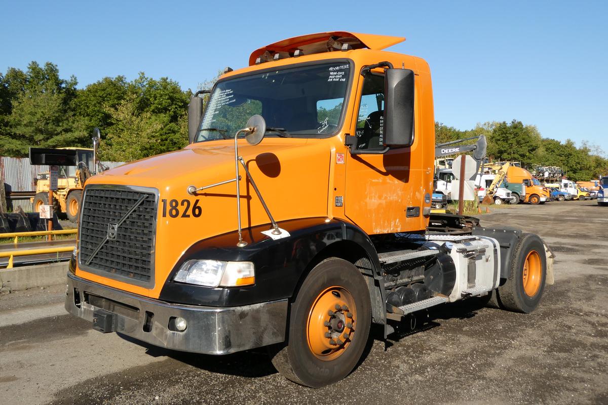 Inventory # 0917252Year: 2012 Make: Volvo Model: VNM42T Type: Single Axle Day Cab Tractor VIN: 4V4M19DG4CN550260 Motor: Volvo D11 10.8L Elec 385 HP - Engine Light On Air to Air: Yes Air Conditioning: Yes (Works) Engine Brake: Electronic DEF: Yes Transmission: Fuller FRO14210C 10 Speed PTO: No Front Axle: 12,000 lb Rear: Meritor MS23-16 23,000 lb Ratio: 3.42 Power Divider: No Suspension: Volvo 2 Air Bag 20,000 lb Tires: 11R22.5 Rims: 10 Bolt Hub Pilot - steel Odometer Reading: 404,302 ECM: Hour Meter Reading: 19,174 ECM Hour Reading: Length: 19'9" Width: 8' Height: 9'10" Wheelbase: 154" Cab to Axle: 90" Cab to End: 115" Weight: 13,400 lb GVW: 32,000 lb Added Features: Runs Well - Engine Light On, Single Frame, Stationary 5th Wheel, Air Disc Brakes, Dash Damaged Price: SOLD 2STXXTCFJJXXTRQPLKDPABEJXRT+750+500 Terms of Sale