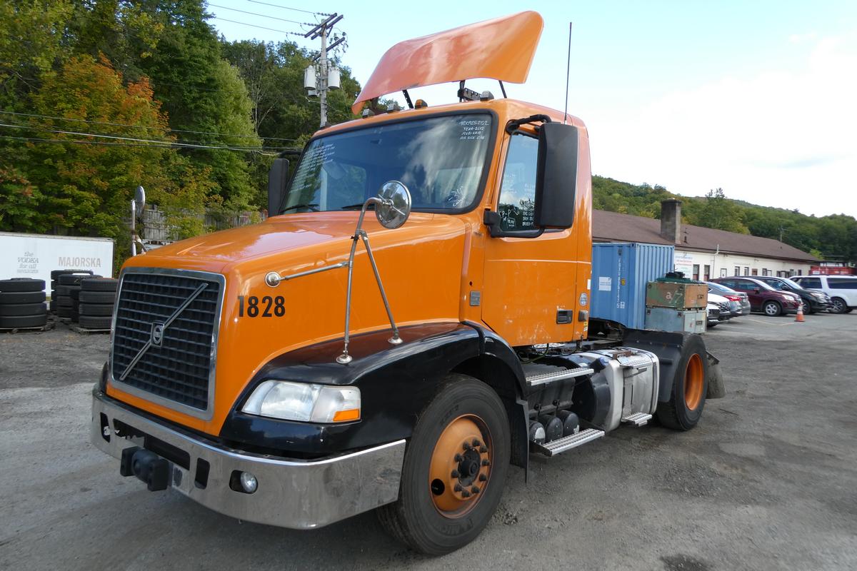 Inventory # 0925252Year: 2012 Make: Volvo Model: VNM42T Type: Single Axle Day Cab Tractor VIN: 4V4M19DG6CN550261 Motor: Volvo D11 10.8L Elec 385 HP - Engine Light On Air to Air: Yes Air Conditioning: Yes (Works) Engine Brake: Electronic DEF: Yes Transmission: Fuller FRO14210C 10 Speed PTO: No Front Axle: 12,000 lb Rear: Meritor MS23-16 23,000 lb Ratio: 3.42 Power Divider: No Suspension: Volvo 2 Air Bag 20,000 lb Tires: 11R22.5 Rims: 10 Bolt Hub Pilot - steel Odometer Reading: 387,616 ECM: Hour Meter Reading: 25,254 ECM Hour Reading: Length: 19'9" Width: 8' Height w/ Fairing: 12' Wheelbase: 154" Cab to Axle: 90" Cab to End: 115" Weight: 13,380 lb GVW: 32,000 lb Added Features: Runs Well - Engine Light On, Single Frame, Stationary 5th Wheel, Air Disc Brakes Price: Sold 2STXXTCJJJXXTRQPLKDPABEJXRT+750+500 Terms of Sale