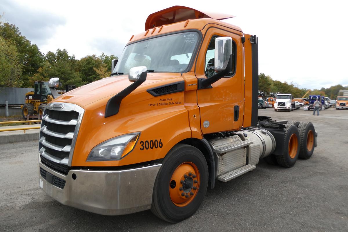 Inventory # 1006255Year: 2019 Make: Freightliner Model: Cascadia PE116 Type: Tandem Axle Day Cab Tractor VIN: 3AKJHTDV7KSKC4154 Motor: Detroit DD13 12.8L elec 410/525 hp - Engine Light On Air to Air: Yes Air Conditioning: Yes (Works) Engine Brake: Electronic DEF: Yes Transmission: Detroit DT12-1650-DH1 HD 12 Speed Automated Manual (Clutchless) - Issues PTO: No Front Axle: 12,000 lb Rear: Meritor MT40-14X 40,000 lb Ratio: 2.47 Power Divider: Yes Suspension: Airliner 4 air bag 40,000 lb Tires: 11R22.5 Rims: 10 bolt hub pilot - steel Odometer Reading: 727,008 ECM: Hour Meter Reading: 17,953 ECM Hour Reading: Length: 24'7" Width: 8' Height w/ Fairing Folded: 10'6" Wheelbase: 176" Cab to Axle: 112" Cab to End: 154" Weight: 16,300 lb GVW: 52,000 lb Added Features: Runs Well - Engine Light On, Transmission Issues, Single Frame, Air Slide 5th wheel, Air Disc Brakes Price: Sold 2STXXTEIJJXXTRQPLKDPBBEJXRT+750+500 Terms of Sale