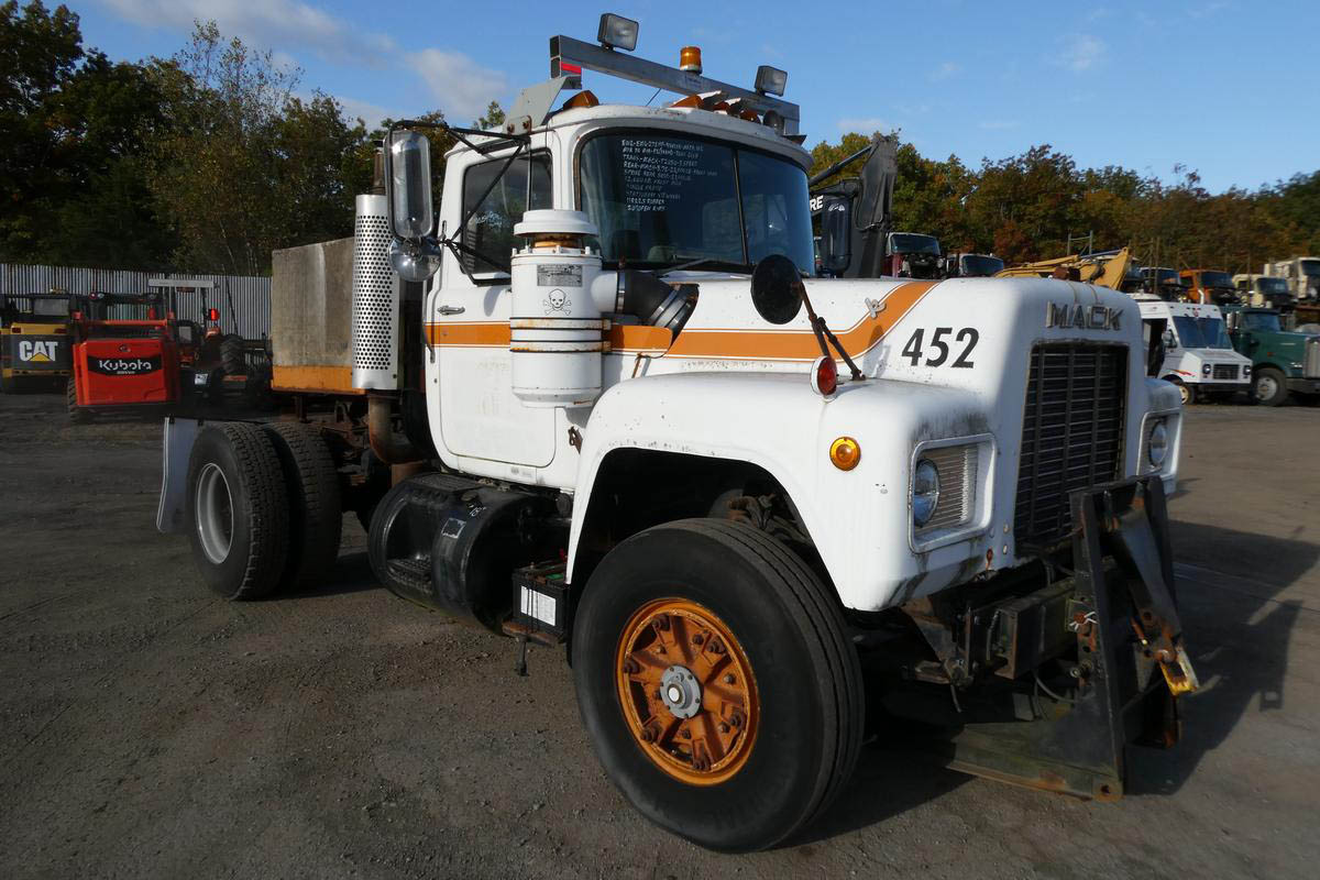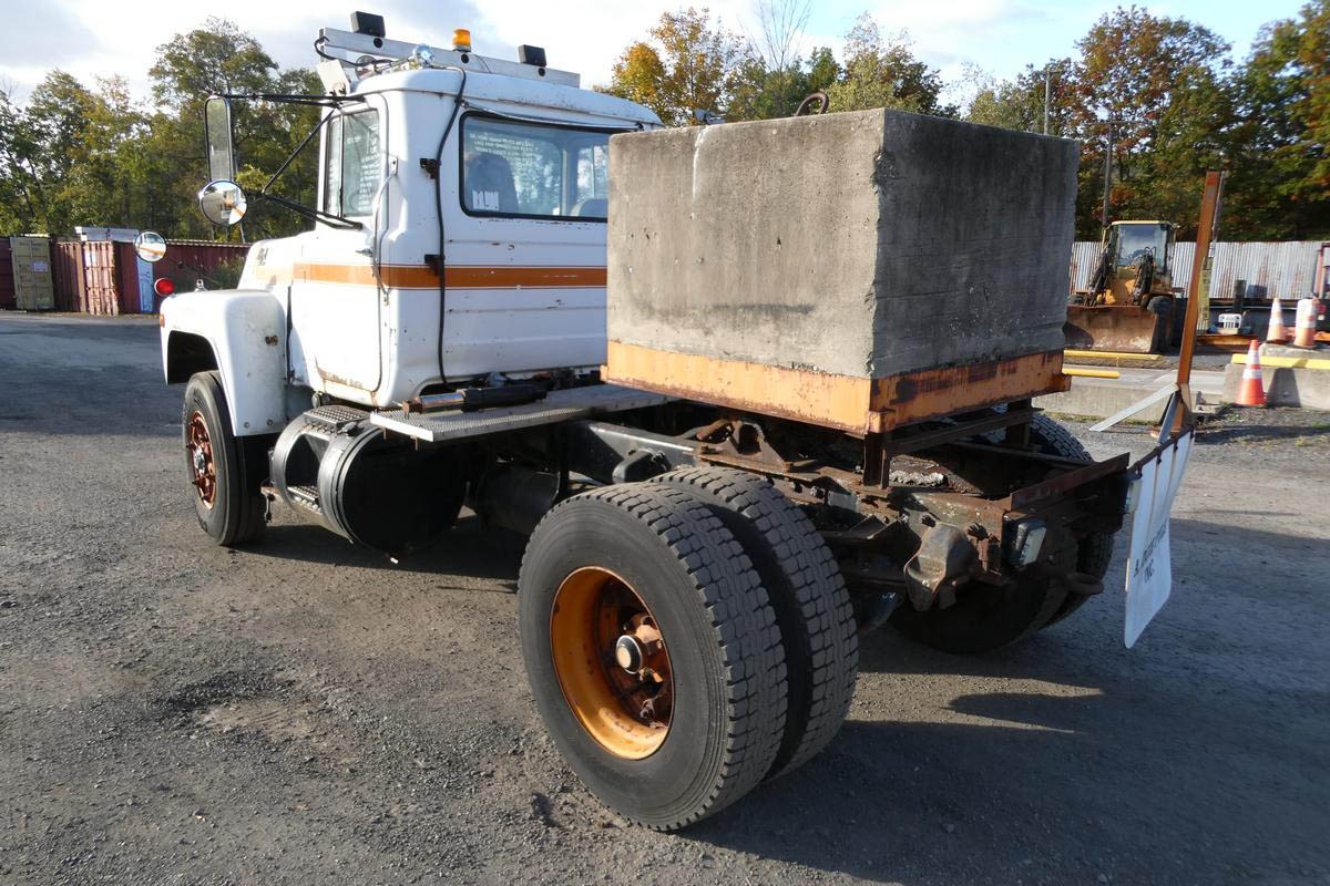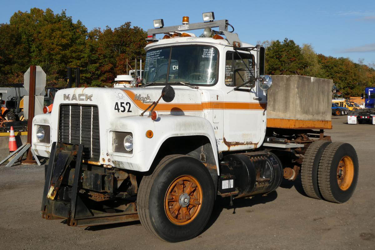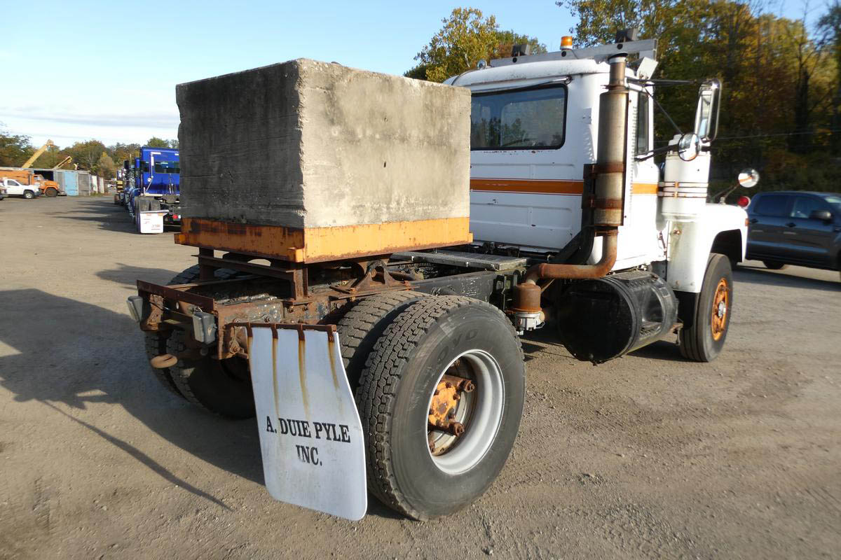 Inventory # 1010254Year: 1985 Make: Mack Model: R690T Type: Single Axle Day Cab Tractor VIN: 1M2N267X5FA002203 Motor: Mack EM6 4 Valve Mech 275 HP Air to Air: Yes Air Conditioning: No Engine Brake: No DEF: No Transmission: Mack T2050 5 Speed PTO: N/A Front Axle: 12,000 lb Rear: Mack Front Load 23,000 lb Ratio: 5.78 Power Divider: No Suspension: Spring 23,000 lb Tires: 11R22.5 Rims: 20" Open Odometer Reading: 28,861 ECM Reading: Hour Meter Reading: 9,544 (4 Digit) ECM Hour Reading: Length: 18'10" Width: 8' Height: 9'6" Wheelbase: 151" Cab to Axle: 72" Cab to End: 105" Weight: 20,260 lb (Concrete Counterweight) GVW: 35,000 lb Added Details: Runs Well, Single Frame, Stationary 5th Wheel Price: $7,900 as is as described NNY 2STXXTEIJJXXTRQPLKDPAGEJXRT+750+500+500 Terms of Sale