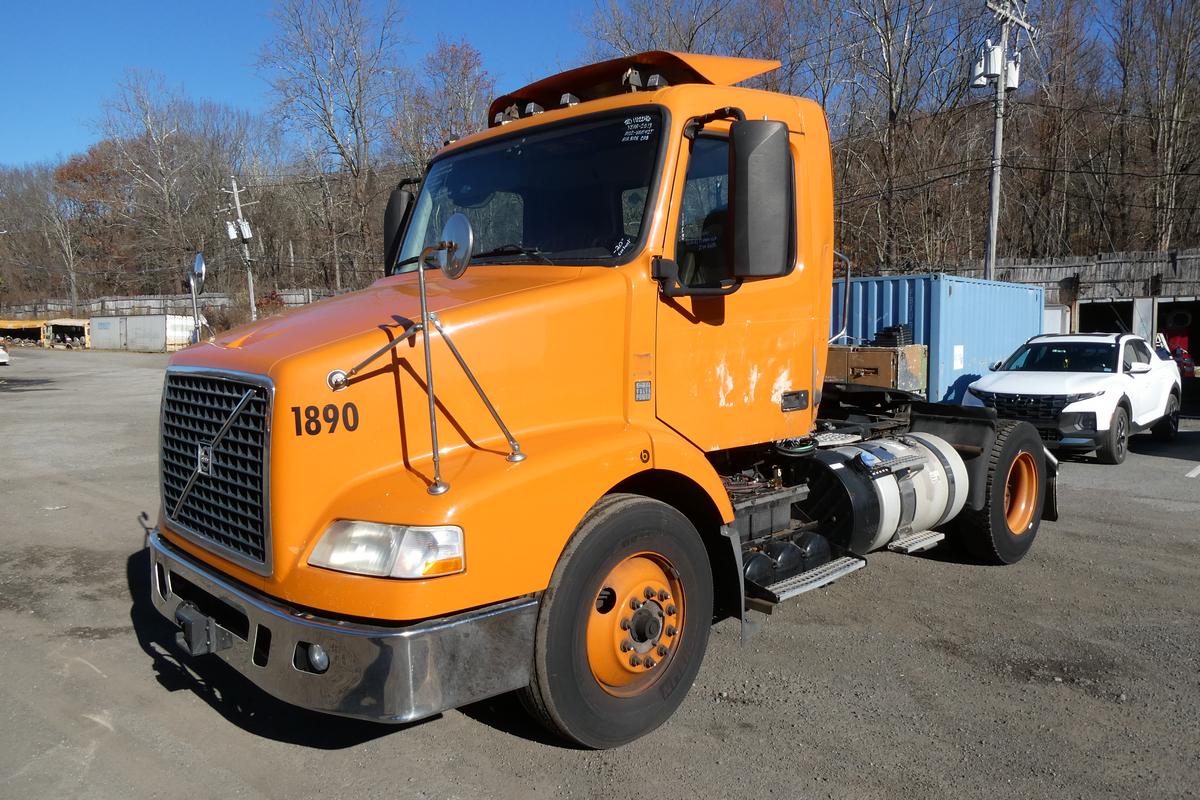 Inventory # 1112246Year: 2013 Make: Volvo Model: VNM42T Type: Single Axle Day Cab Tractor VIN: 4V4M19DG4DN138308 Motor: Volvo D11 10.8L elec 385 hp Air to Air: yes Air Conditioning: Yes (Works) Engine Brake: Electronic Transmission: Volvo ATO2612D Ishift 12 speed automated manual (clutchless) PTO: No Rear: Meritor MS23-16 23,000 lb Ratio: 3.21 Power Divider: Yes Suspension: Volvo 2 air bag 20,000 lb Tires: 11R22.5 Rims: 10 bolt hub pilot - steel Odometer Reading: 422,278 ECM: 422,278 Hour Meter Reading: ECM Hour Reading: 22,597 Length: 20'1" Width: 8' Height w/ fairing down: 10'2" Wheelbase: 154" Cab to Axle: 92" Cab to End: 116" Weight: 13,480 lbs GVW: 32,000 lbs Added Features: Runs Well - Engine Light On - DEF Problems - SCR Fault Will DeRate Soon, Single Frame, Stationary 5th Wheel, Air Disc Brakes Price: SOLD 2STXXTCEJJXXTRQRTVDPAEJJXRT+750+550 Terms of Sale